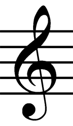 5. Voor aan elke notenbalk staat nog het teken (I) of (II). Het eerste is de g-sleutel of solsleutel, het tweede de f-sleutel, fasleutel of bassleutel. Als je naar het centrum van de 'krul' van de g-sleutel
